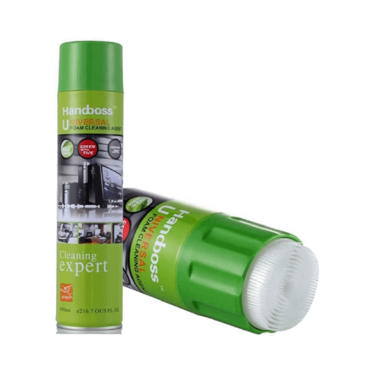 La mousse nettoyante universelle Handboss (650ml) est un agent nettoyant puissant, non toxique et antimicrobien, idéal pour les équipements de bureau, plastiques, métaux et intérieurs de voiture. Elle élimine efficacement la saleté, l’huile et les taches tenaces grâce à une formule moussante à haute adhérence, sans phosphore, laissant un parfum agréable.