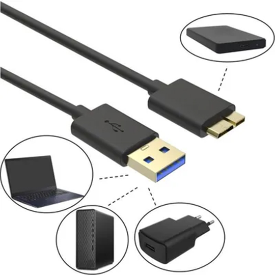 Câble USB 3.0 vers Micro B : Standard pour la plupart des disques durs externes 2.5″ (Toshiba, Hitachi, Seagate, Samsung).
